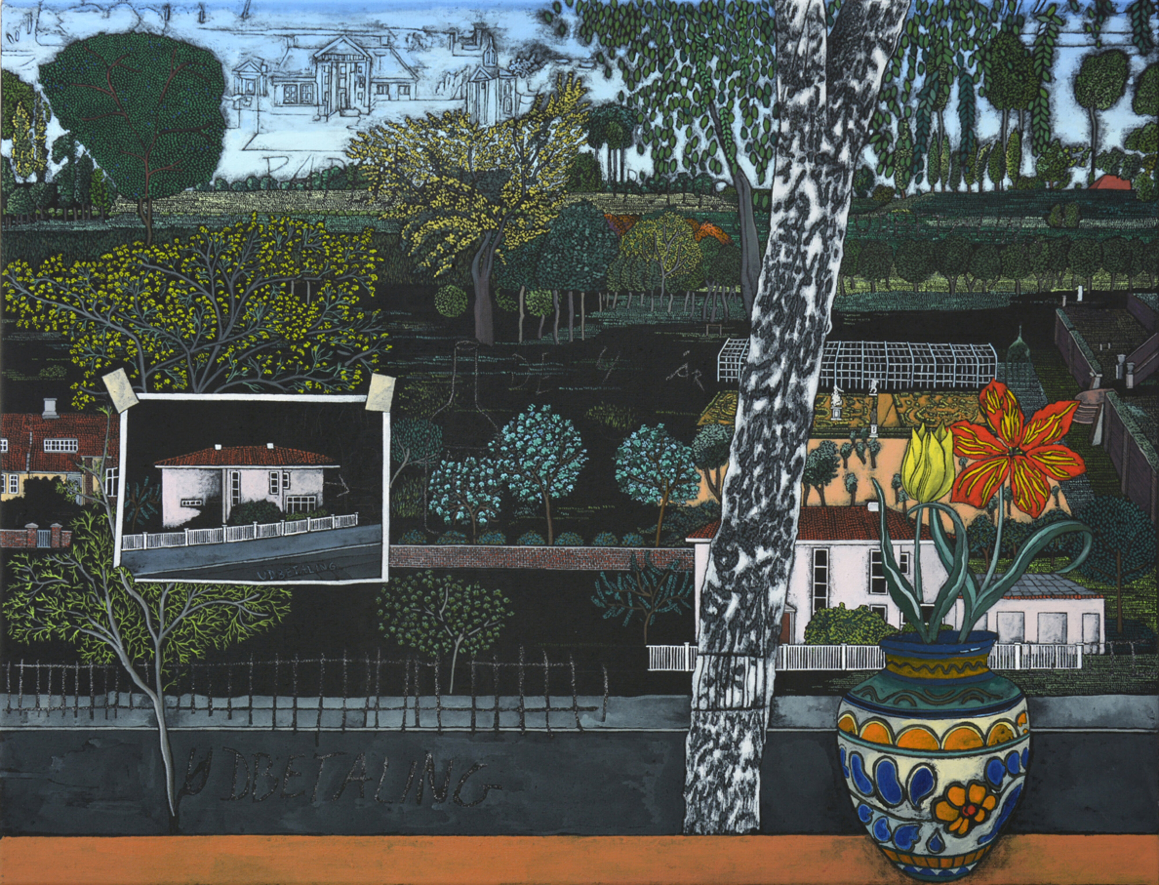 Olie og collage på træ